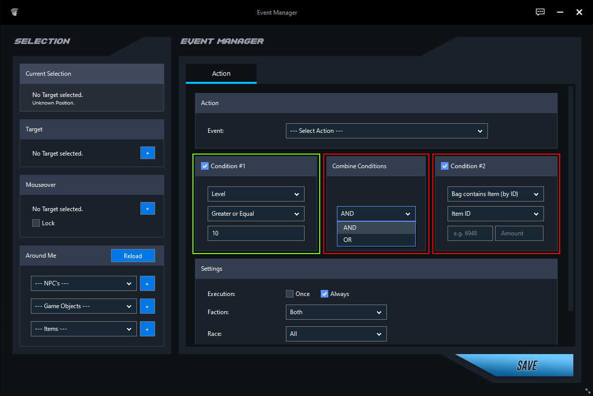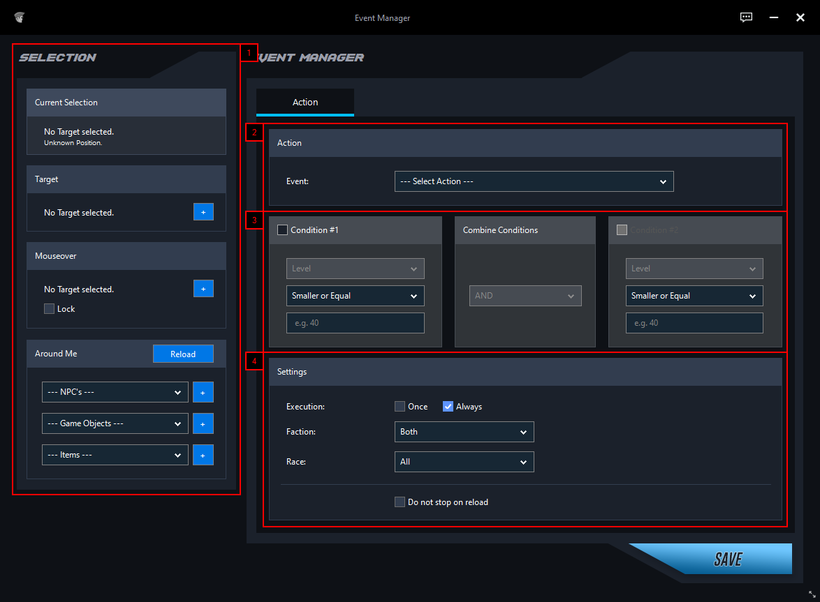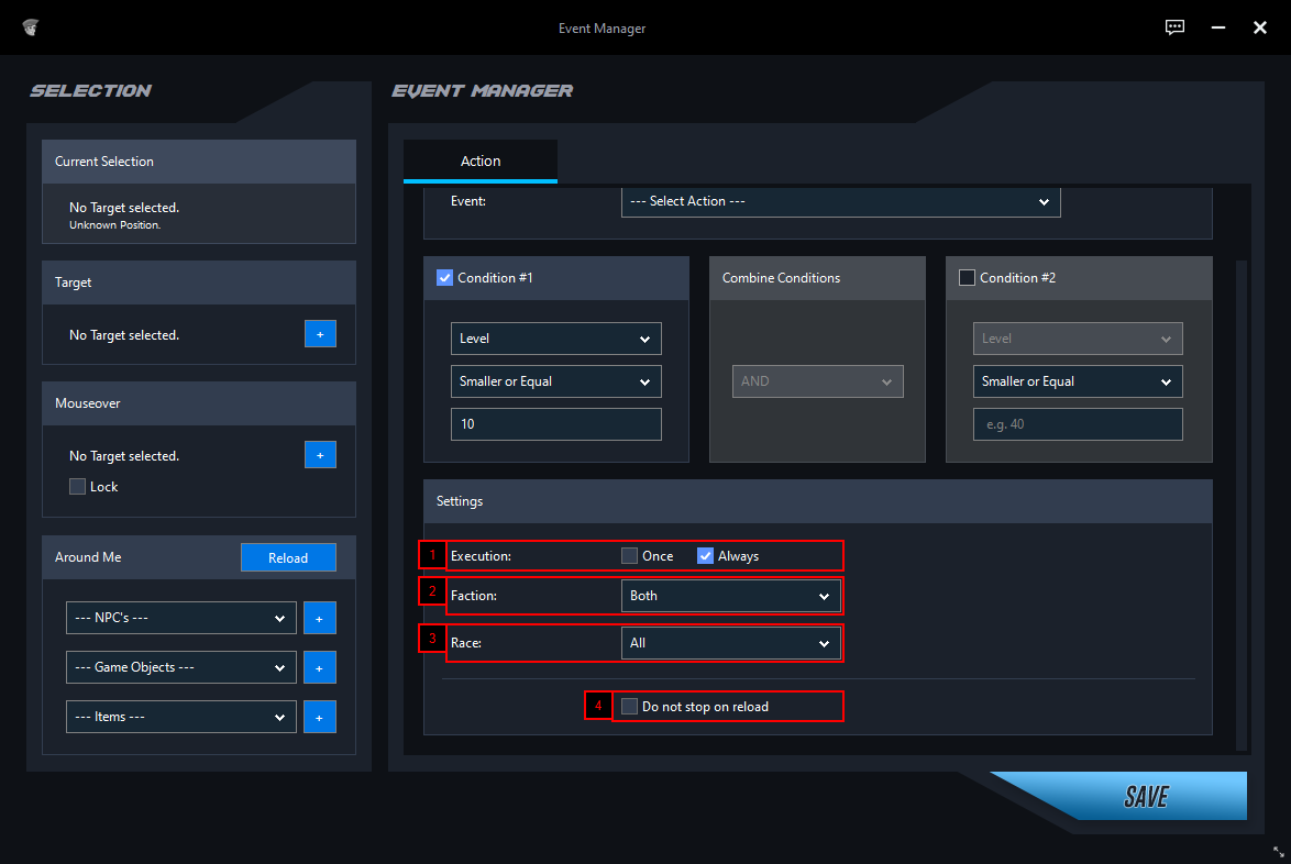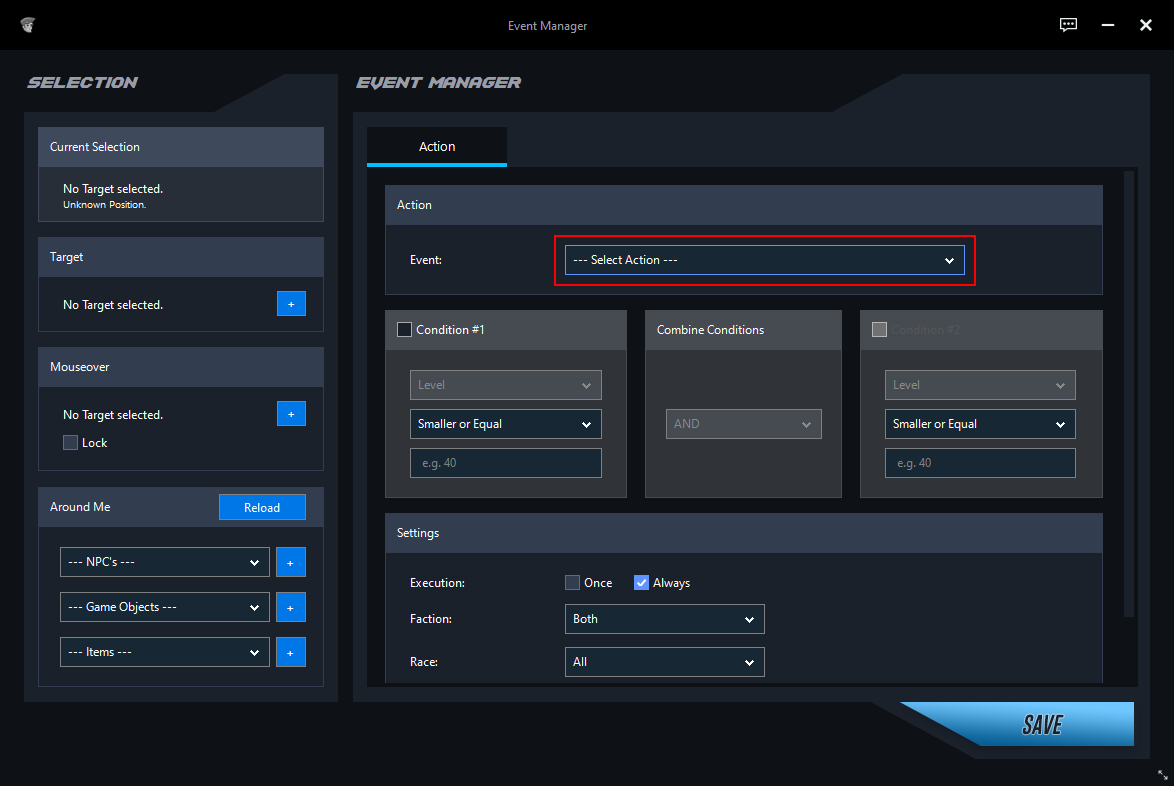 Depending on the selected event, it is necessary to select an NPC, object or item.
