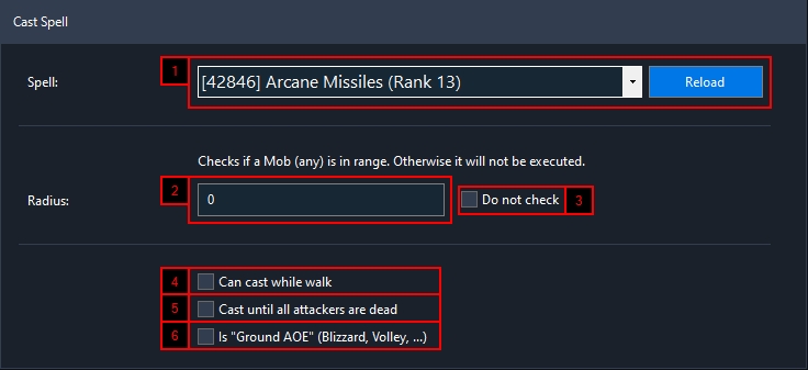 Select the spell you want to cast. Click on "Reload" to reload your spells.