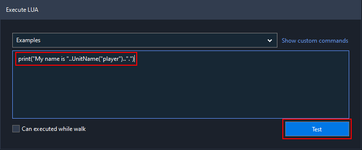Click on "Show custom commands" to display a list and descriptions of all custom commands.