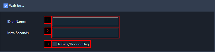 When "Is Gate/Door or Flag" is enabled, Jack will search for the closest specified object and wait until the object's status has changed.