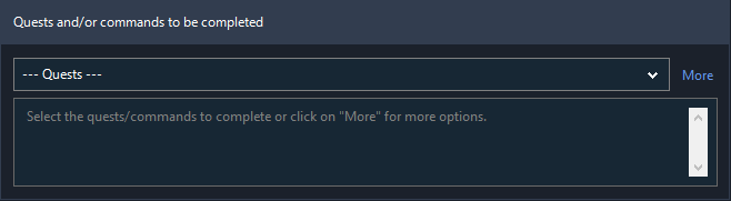 Select all the quests and commands you want to have completed from the drop-down list.
