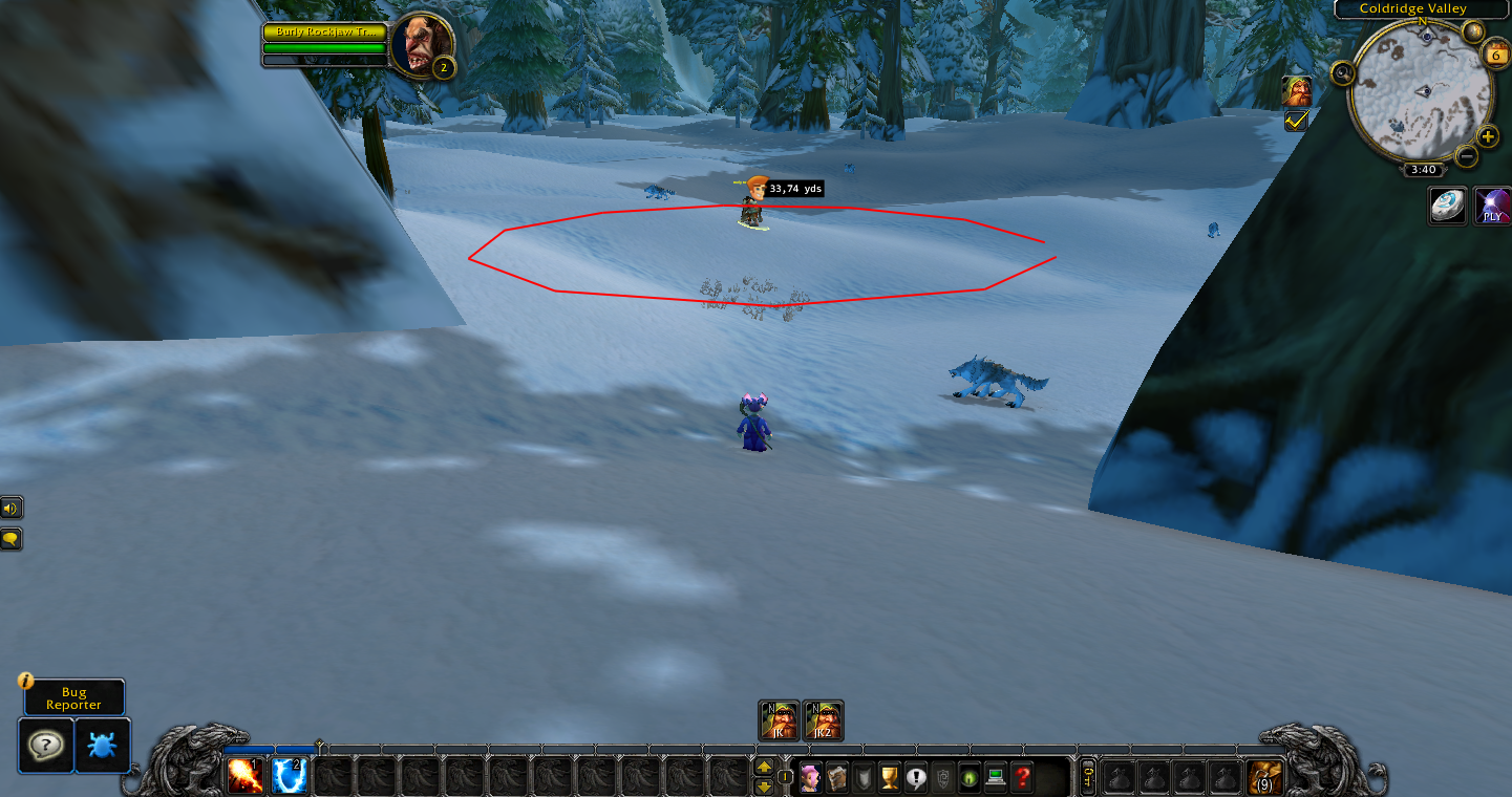 Target an NPC or an object until you see a green and white circle around it.
