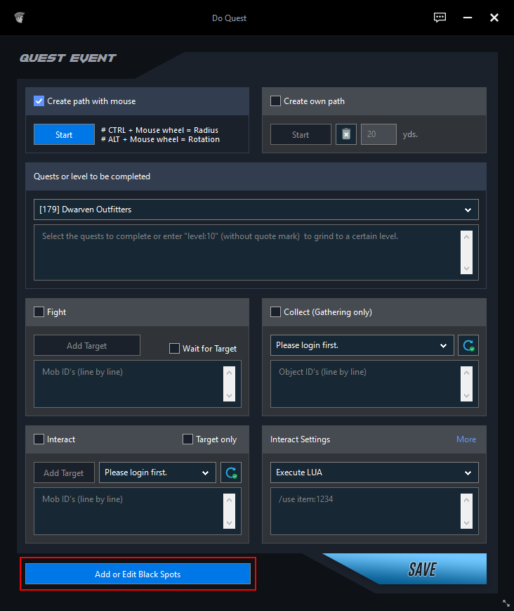Automatically creates a path within a radius you specify by selecting an NPC or object.