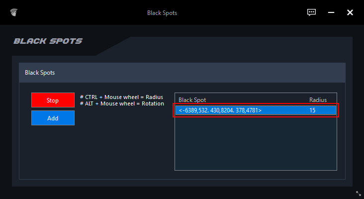 Click on the "Add or Edit Black Spots" button to open the Blackspot menu.