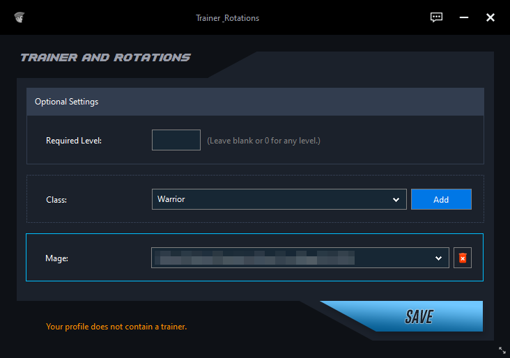Use the selection field to choose the class for which you want to load a custom rotation.