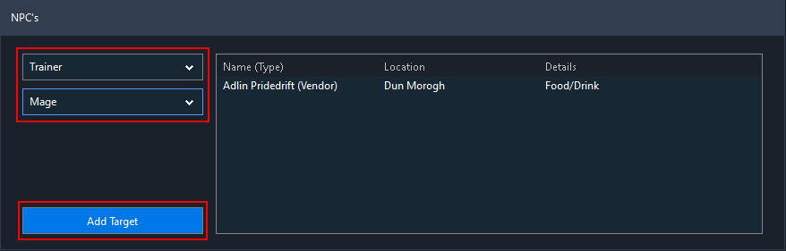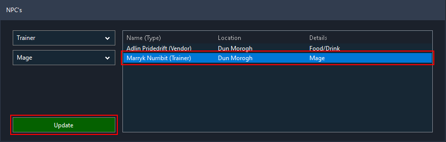 To **edit** an NPC in your list, select it, adjust the settings and click on "Update".