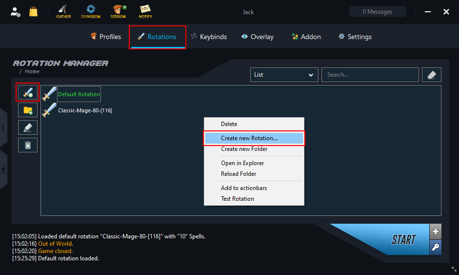 Open your Rotation Manager and click on the left button. (Alternatively, you can also right-click to open the context menu.)